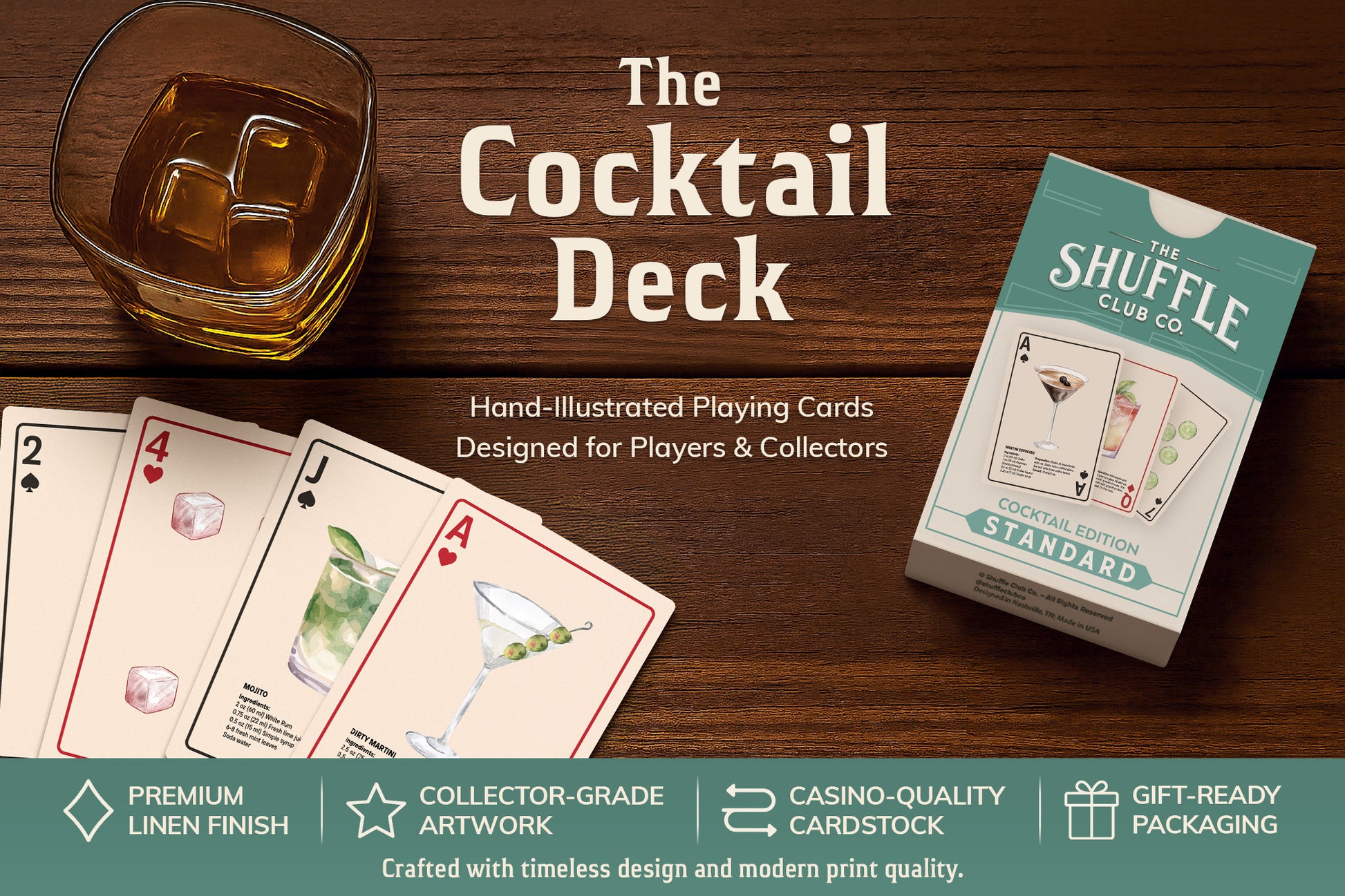 Pour some style into your shuffle. The Shuffle Club Cocktail Playing Card Deck features original watercolor artwork inspired by iconic cocktails like the Martini, Old Fashioned, and Negroni — each card is a visual toast to good taste. With mixology tips and vintage charm, this deck is perfect for bartenders, collectors, and hosts who want to impress.