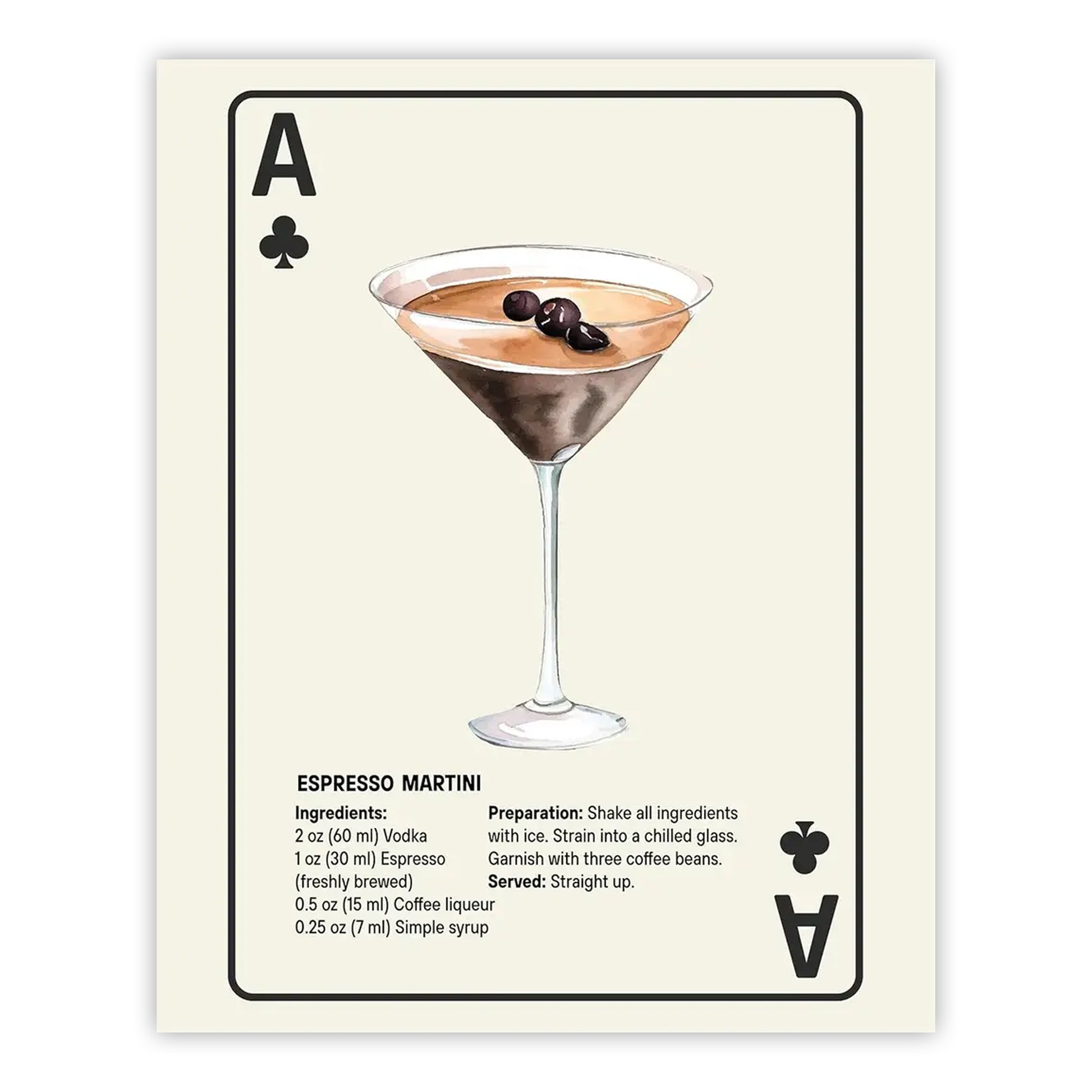 Bring classic cocktail style to your space with the Shuffle Club Co. “Espresso Martini – Ace of Clubs” print. This unframed 8x10 poster features vintage-inspired bar art with rich coffee-toned details, perfect for adding character to kitchens, home bars, cafés, or cozy corners. Designed and printed in Nashville, USA, it’s a stylish nod to your favorite coffee-cocktail combo.