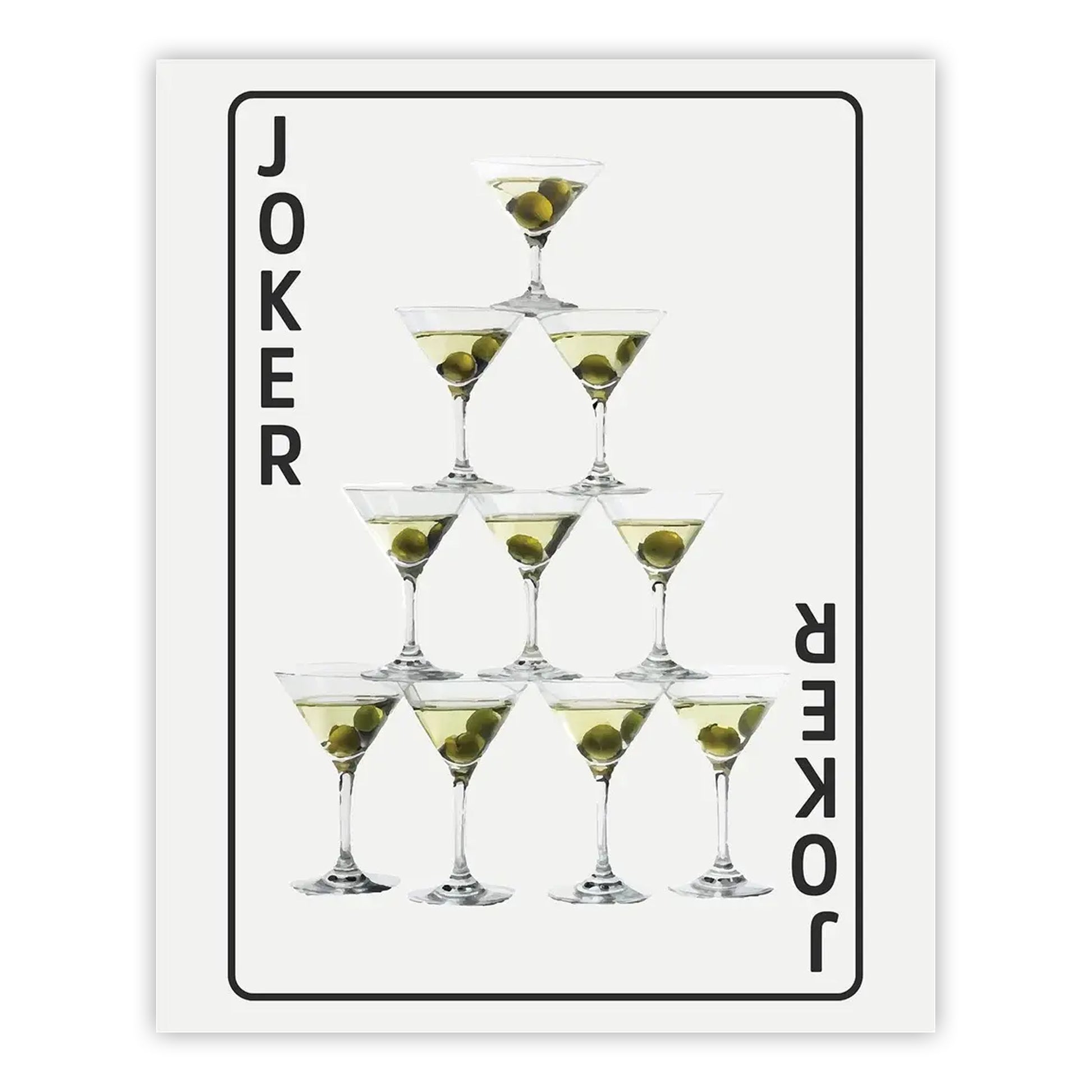 Make a bold statement with the Shuffle Club Co. “Joker Martini Tower – Black” print. This unframed 8x10 poster features a striking watercolor-style illustration paired with a vintage playing-card design, creating a dramatic centerpiece for any home bar, kitchen, or lounge. Designed and printed in Nashville, USA, it adds modern flair with a classic, artistic twist.