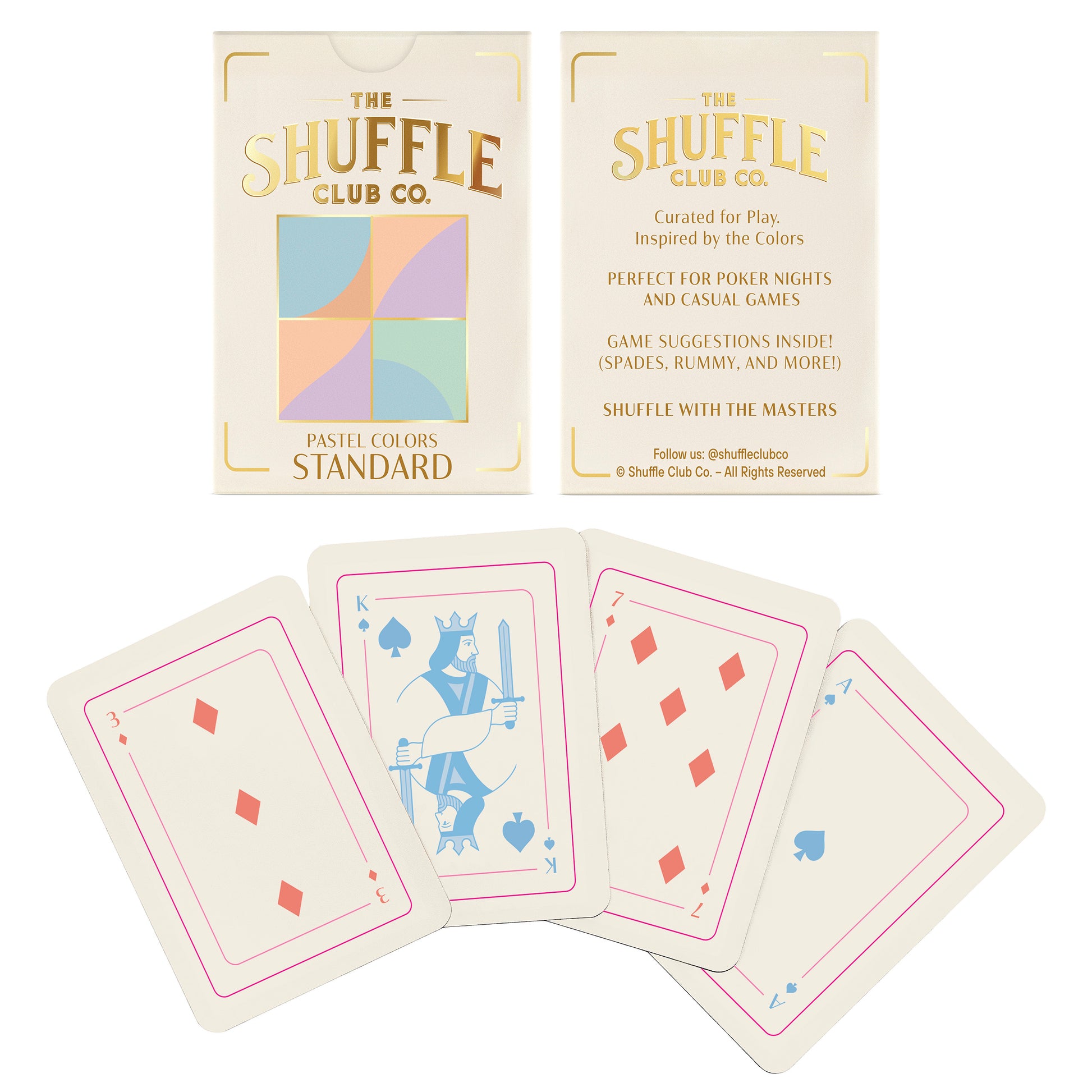 Bright, soft, and aesthetically pleasing — this pastel playing card edition from Shuffle Club Co. brings joy to every shuffle.